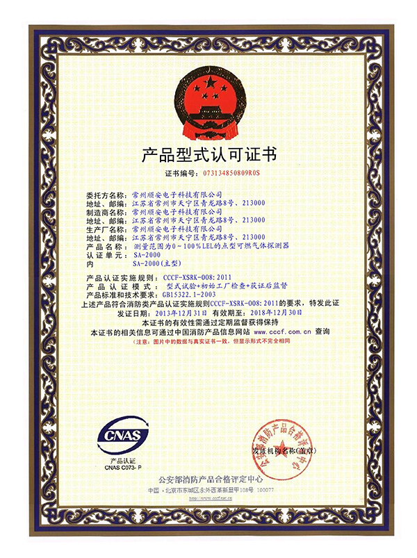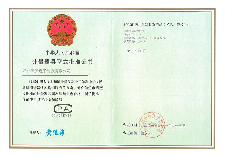 可燃气体检测报警器-计量器具型式批准证书