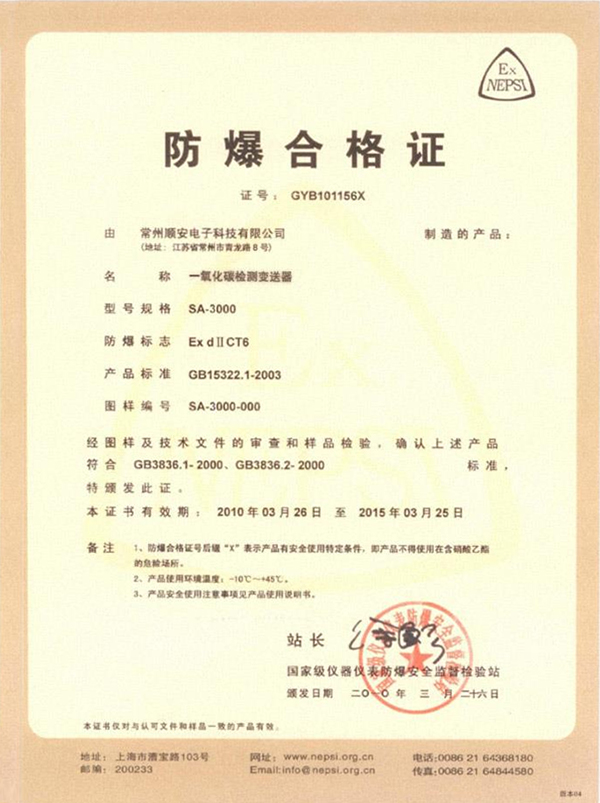有毒气体防爆证书