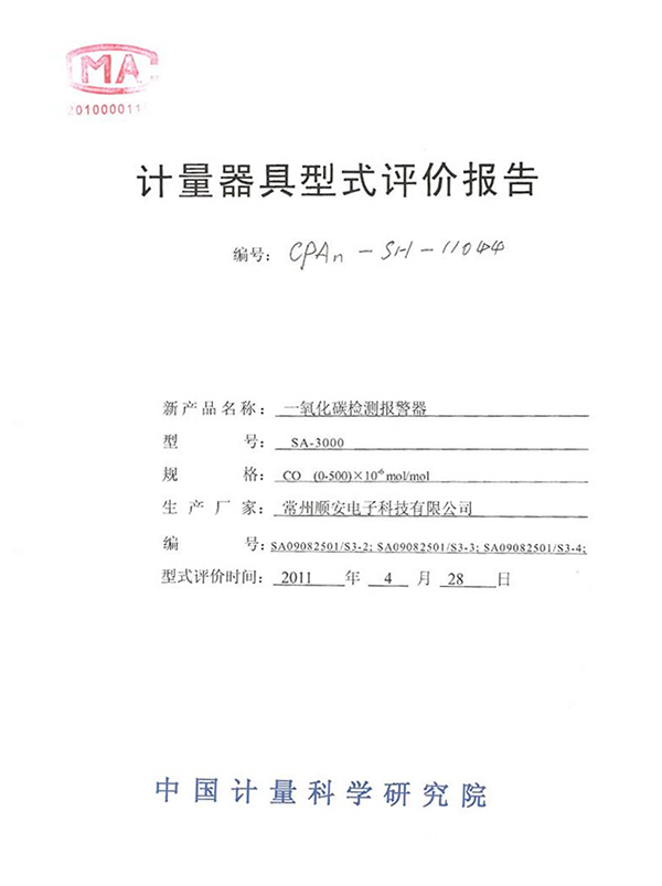 一氧化碳检测报警器-计量器证书