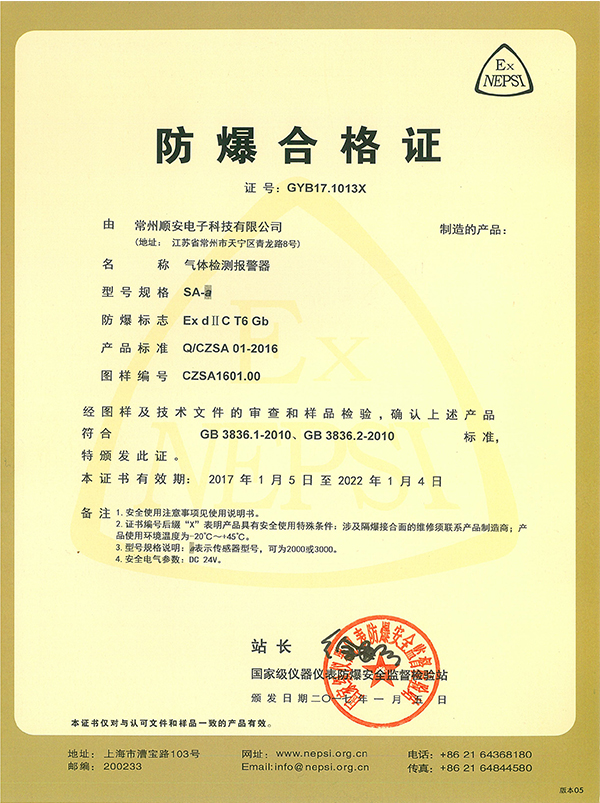 气体检测报警器防爆认可证书
