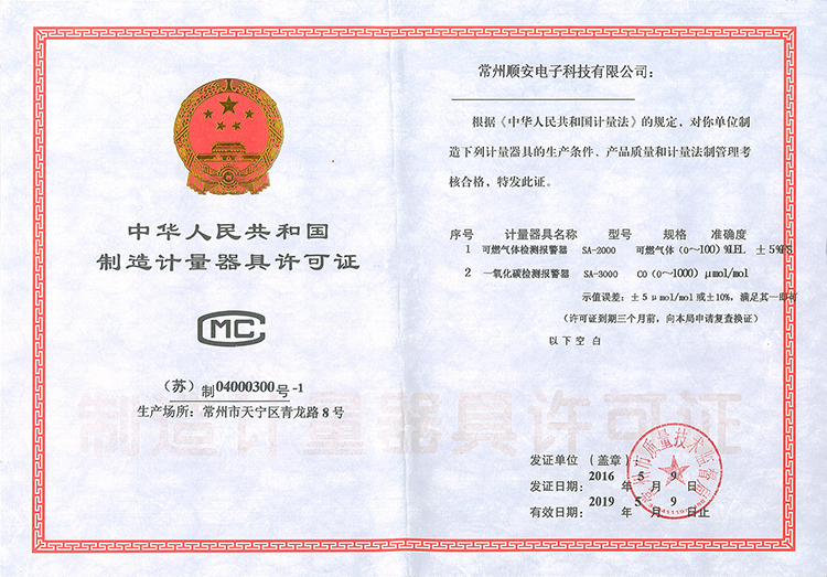 气体检测报警器-计量器许可证